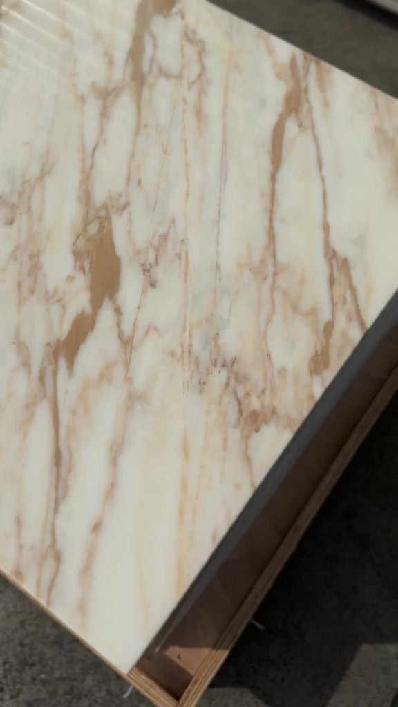 Our latest Gold Calacatta Marble block table, this piece is stunning. The veining detail is rich in colour and the perfect stand out piece for your living space.